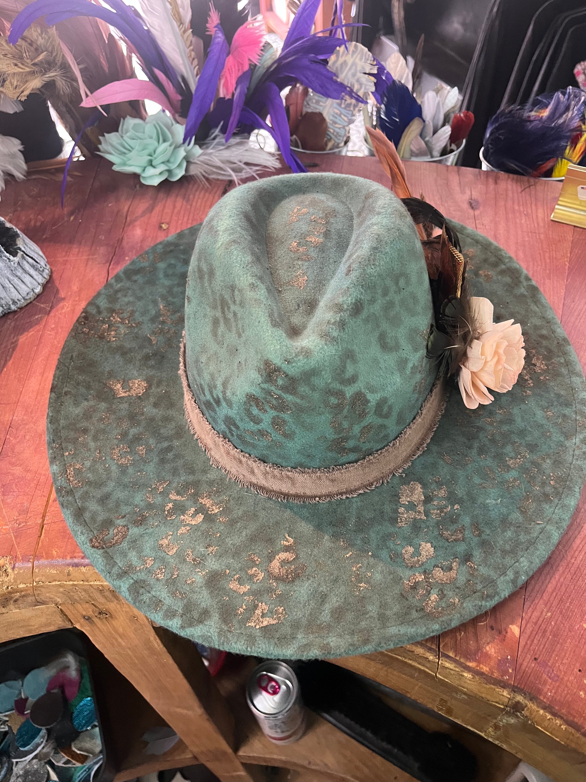 - Stand out in the crowd with this real hand burned and painted hat featuring a unique leopard print design.